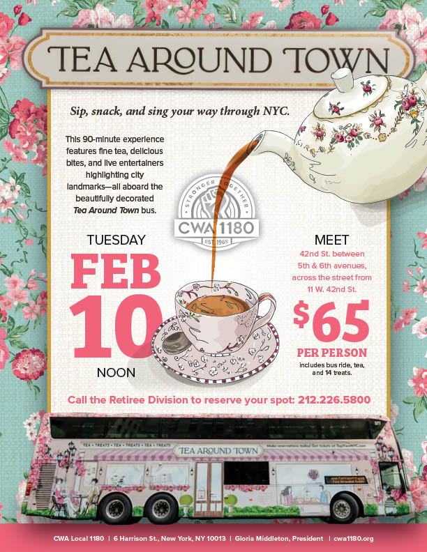 Tea Around Town $65/person | MEET at 42nd St. between 5th & 6th avenues, across the street from 11 W. 42nd St. Call the Retiree Division to reserve your spot today: 212.226.5800 | |